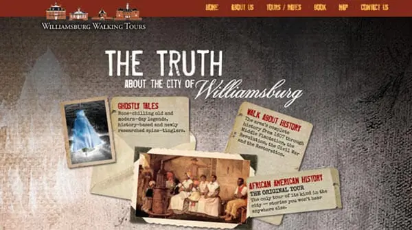 Williamsburg Walking Tours offers themed tours of historic Williamsburg, Virginia – including historic tours, ghost tours, African American history tours, and seasonally offered Christmas tours. Let VistaGraphics bring your business to a reality through web design! We will take your branded advertising, as we did for WWT, map out the functionalities needed and present you with a dynamic, user friendly website that is easy to navigate!
